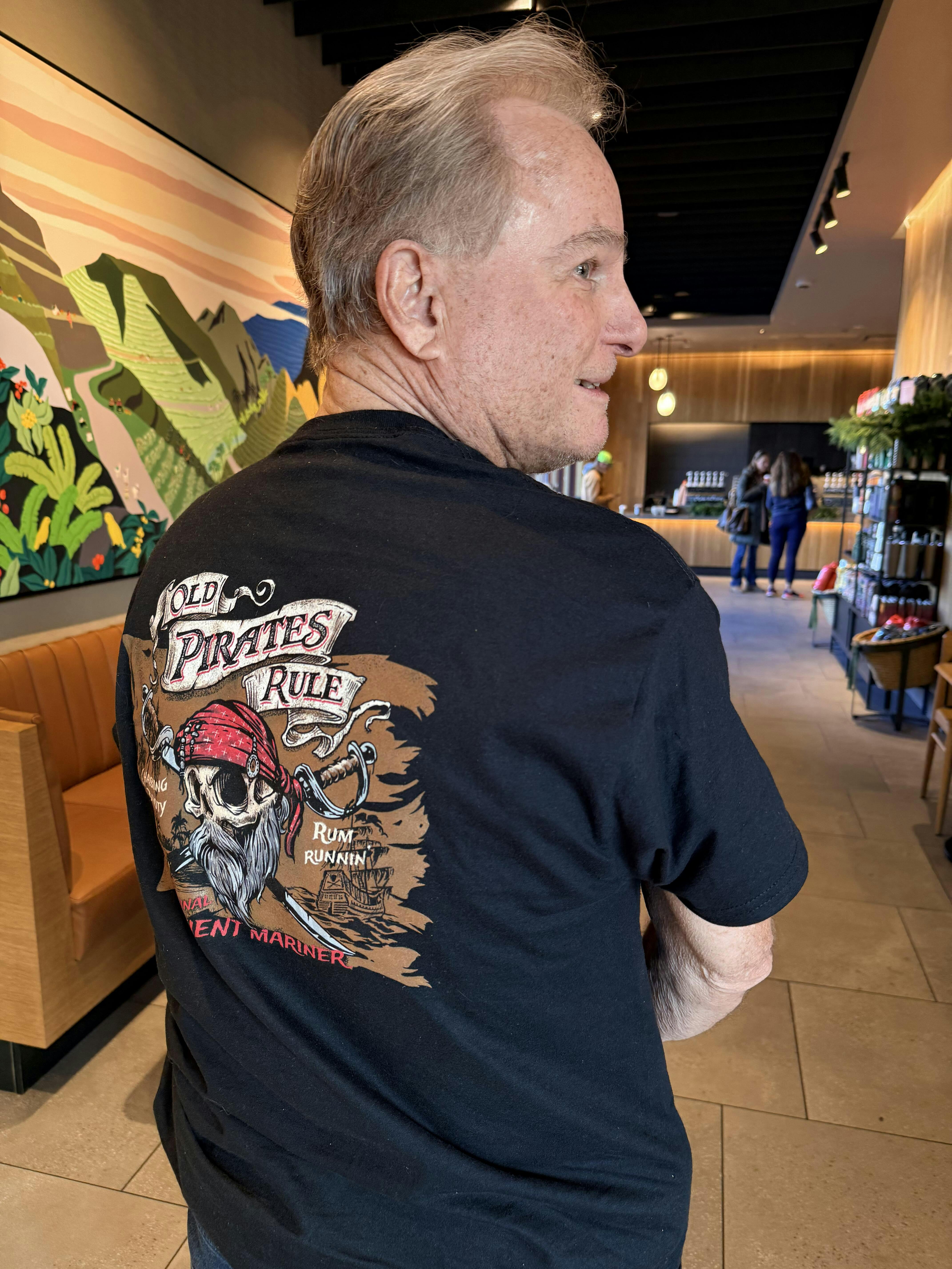 | Shirt Text: Old Pirates Rule - Chasing Booty - Rum Runnin' - The Original Ancient Mariner |